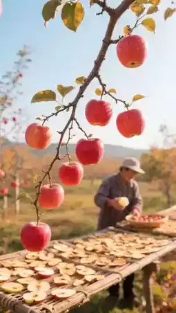 One of the core production areas of the "Hometown of Chinese Apples." After the October harvest, the orchard remains lively. The remaining Red Fuji apples glisten under the autumn sun, farmers dry fruit slices, and the air is filled with sweet fragrance and the scent of smoke.