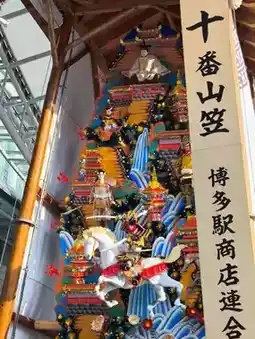 Hakata Gion Yamakasa is the annual Kushida Shrine Festival held in Hakata Ward, Fukuoka City, in July. While the festival isn't yet underway, why not admire the massive installation standing in front of the station?