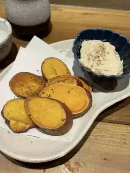 "Pear with tofu dressing" and "Sweet potato with sesame cheese"