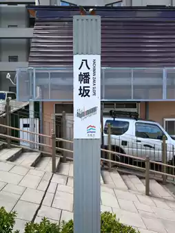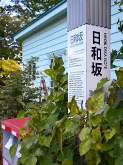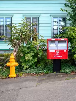 At Hiyorizaka, you can see the cute contrast between the post and the fire hydrant in front of the green building