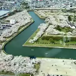 From the top of Goryokaku Tower, Hakodate's spring beauty unfolded like a canvas! Cherry blossoms bloomed in every direction, painting the star-shaped fort with vibrant hues.