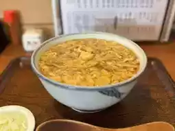 For lunch, I visited a nearby soba restaurant. It was a windy and chilly day in the port town, so I chose the warm "kakitama soba." The thick soup with ginger and egg was a perfect match, and I thoroughly enjoyed it.