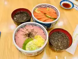 Try a variety of rice bowls featuring salmon, tuna, shrimp, crab, and sea urchin.