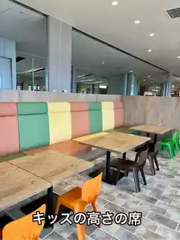 There's also a kids' play area, and the seats next to it feature child-height chairs and tables, a thoughtful touch.