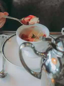The jade lemon tea and strawberry cheesecake that I enjoyed while feeling like I was traveling on a luxury European train were exquisite and moving✨