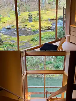 2⃣️The hotel retains a traditional Japanese style. Room rates include breakfast and dinner, allowing you to enjoy the most authentic "Ichibo-nishoku" Kaiseki meals.🍣 Wake up to a view of lush greenery and start your day with a cup of coffee.☕️