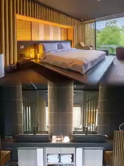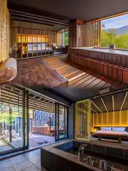Each room has its own private garden. Open the door to lush greenery, as if you've entered a personal Japanese garden. Large windows allow natural light to fill every corner, offering views of the garden by day and stargazing by night. Each room also features a private open-air onsen. Soak in the natural hot spring water, feeling your skin enveloped in warmth as you gaze upon the serene garden scenery.