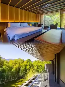 Kinnotake Sengokuen's design perfectly blends traditional Japanese aesthetics with modern minimalist style. Far from the city's noise, the entire ryokan is enveloped by forest, with only the sound of wind rustling through the leaves. Step into a dreamlike Japanese garden, where every corner is breathtakingly beautiful.