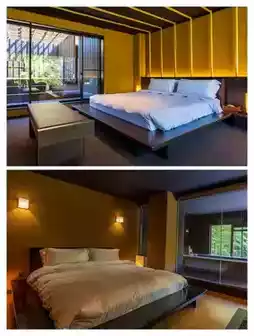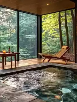 It's hidden in a tranquil location, surrounded by forests, with air so fresh it seems to have its own natural filter. The rooms are spacious and comfortable, with a traditional Japanese style that's full of charm. Just open the window and enjoy the view.