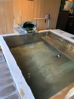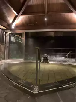 Every room comes with an open-air bath♨️, and there's even a refrigerator outside, so you can enjoy a leisurely drink 🥰. While the private baths in the rooms are amazing, the large communal bath is even better 🥳.