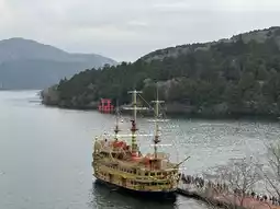 On the museum's top-floor observation deck, though the thick clouds obscured the snow-capped peak of Mount Fuji that day, the emerald waves of Lake Ashi cradled a vermilion torii gate in the distance. It was as if Katsushika Hokusai's "Thirty-Six Views of Mount Fuji" were unfolding before our eyes.