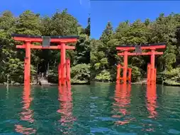 💥 The striking red torii gate by Lake Ashi is breathtakingly beautiful. Standing here feels like stepping into the world of 'Spirited Away,' with the divine pathway vibes at their peak!