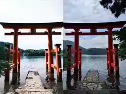 Hakone Shrine features a striking red torii gate situated in Lake Ashi ⛩️🌊, making it one of the most iconic landmarks of the shrine. This torii appears to float on the water, attracting numerous tourists who come to admire and take photos of it ✨😊.