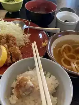 🍴 Stop for some tonkatsu at the famous lakeside restaurant "Ueno" after disembarking. A must-try is a stop at Ueno (うえ乃), a local restaurant with an authentic Japanese atmosphere located on the lake. Their recommended dish is the tonkatsu (pork cutlet) paired with the warm soup. It's absolutely delicious! 🍚✨ In addition to tonkatsu, the restaurant also offers soba, udon, and other Japanese set meals. If you're visiting Lake Ashi, we highly recommend trying it.