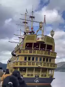 • Queen Ashinoko (クイーン芦ノ湖): This newest gold-and-black ship debuted in 2019 and boasts a stunning modern design.
