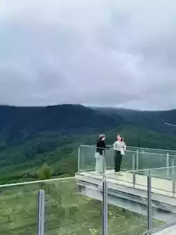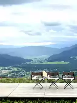 Large and small decks with chairs are placed on the slope, and we managed to see the magnificent view below.