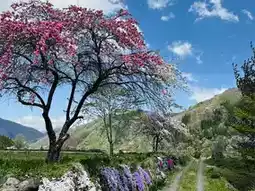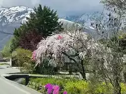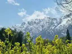 Springtime at Hakuba Oide Park is like stepping into a dream. The distant snow-capped peaks glisten under the sunlight, while the gentle stream flows at your feet. Along the banks, cherry blossoms intertwine with fresh greenery, creating a captivating spring landscape. Every step here feels like walking into a poetic scene of Japan's countryside—serene yet brimming with vitality.