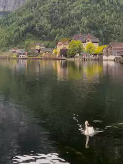 While walking along the lakeside, you'll often encounter swans gracefully gliding across the water. This peaceful coexistence of nature and humans is a unique charm of Hallstatt, offering the perfect setting for a relaxing time. 🦢💙🌞