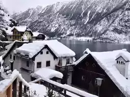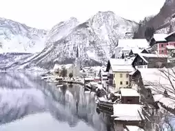 Hallstatt is a small village in Austria, nestled by the Hallstätter See and surrounded by the towering Alps. Every corner is a picture-perfect memory. The traditional European wooden houses cascade down the hillside, their warm hues accentuated by the freshly fallen fluffy white snow.