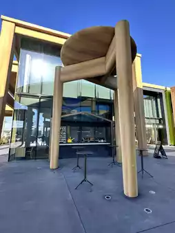 ▶️A unique complex that incorporates gigantic tables and chairs that are about 13 times larger than the real thing, and Unagi Pie paper bag objects into the design