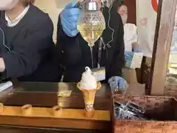 The souvenir shop has a lot of honey and related products, and the soft serve ice cream topped with honey was especially popular.