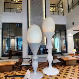 We were greeted by a large dining table, giant chairs, oversized paper bags, and even a giant piggy bank! Great for IG pix.