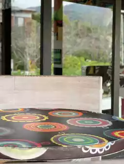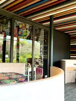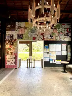 The attached cafe is also decorated with fabric panels, giving it a stylish feel!