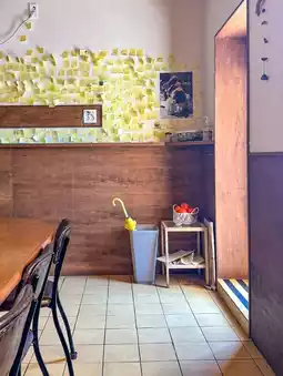 Gimnyeong Bissori is located about a 50-minute drive from Jeju Airport and just 1 minute away from Gimnyeong Beach. The restaurant operates from 11:30 AM to 5:30 PM every day except Tuesdays. There is a parking lot near the Gimnyeong Fishing Village's communal warehouse behind the restaurant. On the day of my visit, it was lunchtime, and the restaurant was quite crowded, so I couldn't capture the entire interior. Including the bar table at the entrance and the tables inside, the restaurant can accommodate up to 18 people.