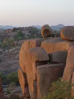 Hampi’s boulder-strewn landscape is a unique and stunning sight to behold. Massive granite rocks, some precariously balanced, form a labyrinth of natural sculptures across the land. These towering formations create an almost surreal, otherworldly setting, making it feel like a paradise for adventurers and nature lovers alike. The boulders rise dramatically against the backdrop of lush greenery and the distant ruins of the ancient city, creating a perfect blend of natural beauty and historical grandeur. Whether you’re climbing the rocks, exploring hidden crevices, or simply soaking in the tranquility, Hampi’s boulder paradise offers an unforgettable experience that connects you to the timeless spirit of the land.