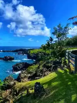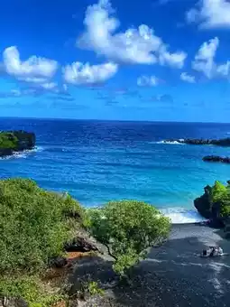 Nearby, Waiʻānapanapa State Park amazes visitors with its black sand beach, lava caves, sea arches, and coastal hiking trails. The stark contrast of jet-black sand against turquoise waters makes it one of Maui’s most photographed spots. Together, Hāna and Waiʻānapanapa offer the perfect mix of natural wonder and cultural richness. 🌺🏝️