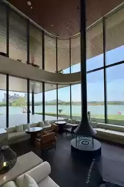 The entire hotel is like a three-dimensional art gallery hidden in the lakeside scenery. Each of the 34 rooms has its own design ingenuity, with floor-to-ceiling windows framing the shimmering waves 🌊 More than a hotel, it's an art-infused utopian escape. The light-and-shadow corridor changes expressions with the day and night, the sound-healing space harmonizes water flow with piano notes, and even the hallway corners hide sculptures and paintings—every snapshot feels like a magazine cover 📸