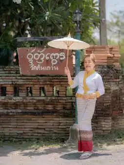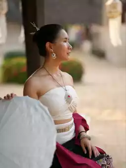 Right in front of the temple, there’s a shop that rents Lanna costumes – the only one in the area. The rental fee includes hairstyling and dressing assistance, although makeup is not included. Wearing the traditional attire really enhances the experience and makes for stunning photos that capture the essence of Lanna culture.