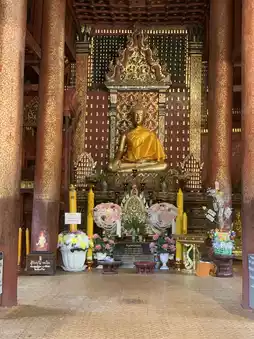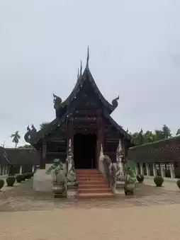 Wat Ton Kwen, or Wat Intharawat, is located on Soi 3, Nong Kwai Subdistrict, Hang Dong District, Chiang Mai Province (near the Royal Park Rajapruek). Wat Ton Kwen is an ancient temple with a beautiful exterior. The temple grounds are shady and surrounded by palm trees, creating a mystical, ancient atmosphere. The tall palm trees are probably long-established. The ancient temple atmosphere, surrounded by these large palm trees, gives Wat Ton Kwen a truly authentic Lanna charm. It's no wonder it's been used as a filming location for numerous dramas. The architecture at Wat Ton Kwen is renowned for its exquisite Lanna architecture, recognized by the Association of Siamese Architects as an outstanding preserved building.
