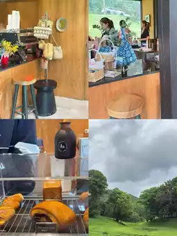 Cypress Lanes x Rachel Coffee is a green-themed cafe that heals the soul, situated along the Samoeng Road in Chiang Mai. Known as Rachel Coffee, the cafe features a modern design with gray and black tones and exposed concrete. The coffee here is quite good, with several signature drinks. The entrance fee for photography at Cypress Lanes is included. Seating is somewhat limited, and the place can feel crowded due to the number of visitors. It's recommended to visit during weekdays or non-holiday weekends to avoid the crowds.