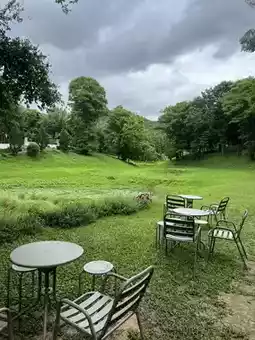 The cafe offers both indoor and outdoor seating, and cute props. This area is located in Cypress Lanes. There's a 50 baht entrance fee per person, but you can use your receipt for a discount at the cafe, which is located on the other side. The coffee is quite good, and delicious!