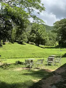 The original café, which was situated among the pine trees, has now moved to a higher location. There is an entrance fee, but it can be used as a discount for drinks, making it a great deal. You can enjoy coffee, beverages, and take beautiful photos all in one place.