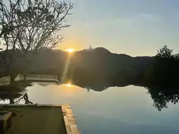 ✨ Highlights: A luxurious resort on a hill with mountain views, surrounded by nature, peaceful atmosphere, spacious rooms, and a large swimming pool.