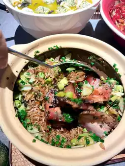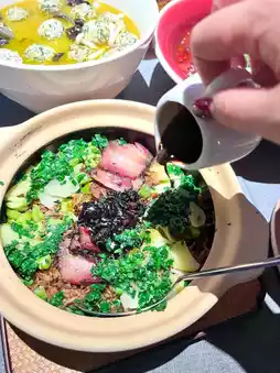 The moment the lid is opened, the aroma of rice and pork belly hits your nose.