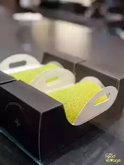 The egg roll packaging is very delicate. Apart from the black packaging bag, the egg roll box inside is also very clever: ice packs are placed on both sides to keep the eggs warm, and the egg rolls are well secured, so there is no need to worry about them being crushed. Moreover, the black and gold design is really high-end!