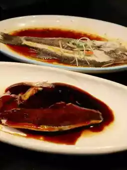 The fish is served in two flavors: sweet and sour, and oil and vinegar. I personally prefer the refreshing taste. The fish is tender and is a unique Hangzhou dish.