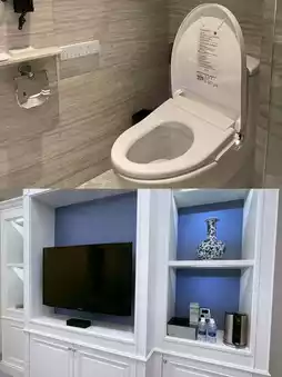 The room is in good sanitary condition, clean and tidy, making people feel at ease. The sound insulation effect is also good, and you can have a good rest in a quiet environment. But there are stains on the white stool, and I hope to further improve the hygiene details.