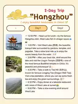 πΉ 8:00 AM β Take a flight to Hangzhou (ζε·) βοΈ (~2 hrs).