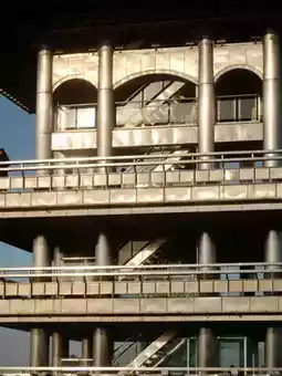 ๐ฟ The whole building looks very interesting. It is made of metal and reflects sunlight. It looks really nice when the sun is about to set.
