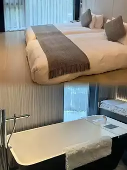 The floor-to-ceiling windows in the room bring the mountain view into the room, allowing you to indulge in the greenery. The photos are also beautiful.