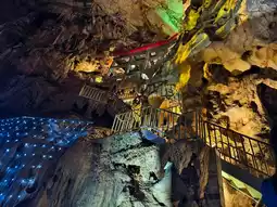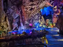* Also known as Lingshan Cave, with over 1,500 years of history, a vertical shaft structure, a height difference of 109m, and a total area of over 4,000 square meters😲 The cave features five halls: Qilin Welcoming Guests, Underwater Wonderland, Sai Kunlun, Tianzhu Hall, and Dayun Basin! The stalactites resemble flowers and fruits, like brocade and satin, palace courtyards, and jade lotus waterfalls. These sights are magnificent and spectacular, truly diverse and lifelike😍 Lingshan's magical scenery is tall, vast, and perilous, blending wind, water, air, and waterfalls🤩