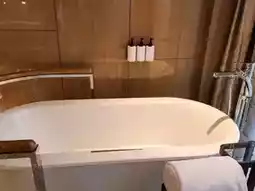 The rooms are spacious, with modern and sophisticated interiors that leave a lasting impression. The bed was very comfortable, allowing for a restful sleep. The bathroom was particularly luxurious, featuring a spacious bathtub and shower area, perfect for relaxing after a long day. Many reviews have highlighted the well-equipped and comfortable rooms, with numerous guests praising the soft bedding and the quality of sleep they experienced.