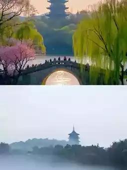 Few people visit in the morning. You can watch the sunrise over Leifeng Pagoda from the Lakeside Residence terrace.