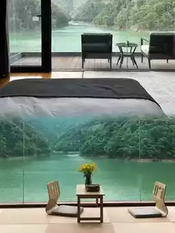- Location and Environment: Located in Qingshandian Village, a remote fishing village in Lin'an, Hangzhou, known as "the most beautiful fishing village in western Zhejiang" and "the Three Gorges of western Zhejiang", the homestay is next to the Liuxi River. The entire building is "suspended" over the Liuxi River, surrounded by lush green mountains, with mountain and river scenery as a natural backdrop 🌄.