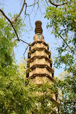 Take photos at the corner of the Seal Society with the simple and elegant buildings and green plants as the background; stand under the Huayan Sutra Pagoda and take a picture of the tower body from below; you can also take pictures through the doors and windows in the pavilions and towers to capture the interlaced light and shadow.