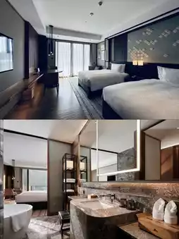🍱 Super rich food experience! Yuncong All-Day Restaurant brings together global buffet and a la carte dishes, with fresh ingredients and super delicious taste; Shuiyang Chinese Restaurant's innovative Hangzhou cuisine and new-style healthy Cantonese cuisine, each of which is unforgettable; Yi Bar's afternoon tea is exquisite and delicious, and the fine wines in the lobby bar are not to be missed. There is also the fragrant tea in Songjiantang Tea House, which is full of tea fragrance and can make you relax instantly~